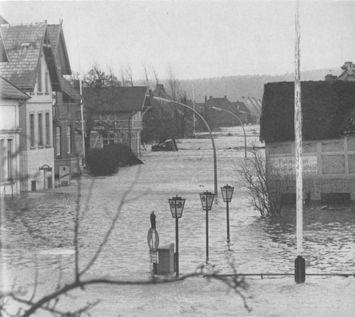 In der Nacht, als ein großer Sturm war, weckte meine Mutter mich und sagte, dass wir fort müssten. "Das Hochwasser kommt, der Deich ist gebrochen!" Mein Vater stand schon mit dem Auto vor der Tür. Hastig stiegen wir ein und fuhren nach Bostelbeck zu meinem Onkel. Auf der Straße waren viele Autos, die alle vor dem Wasser flüchteten.