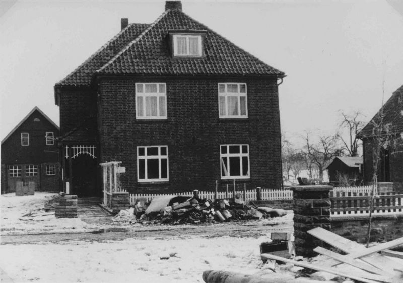 Bei meinem Onkel sahen wir immer aus dem Fenster und um 3 Uhr morgens kam auch da das Wasser. Wir sind dann zu meiner Schwester gefahren, die in Hausbruch wohnte. Da waren schon Soldaten, die Leute retten wollten. Unser Haus in Moorburg stand 3 m tief im Wasser. Alle Sachen sind nass und verdorben. Erst nach 14 Tagen war das Wasser wieder aus dem Haus. Eine dicke Schicht von Schlamm bedeckte die Möbel und anderen Gegenstände. Alle unsere Ställe waren kaputt. Unsere Hühner und Butje sind ertrunken.